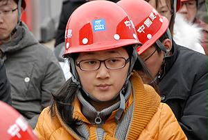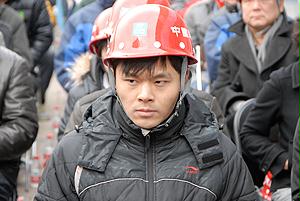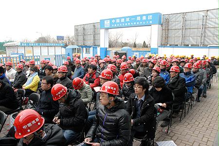 國(guó)資委機(jī)關(guān)青年志愿者與喬老在工地前合影