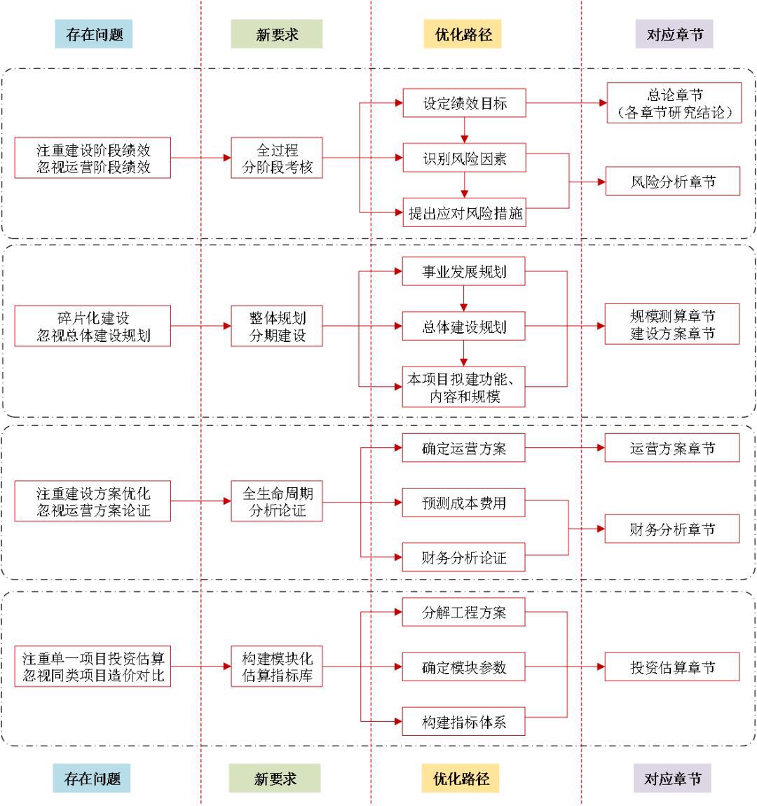 《政府投資條例》是我國(guó)深化投融資體制改革和“放管服”改革的重要成果,是我國(guó)政府投資領(lǐng)域的首部行政法規(guī)。針對(duì)以基本公共服務(wù)項(xiàng)目為代表的政府投資項(xiàng)目可行性研究突出存在的“碎片化”“階段化”“片面化”等問(wèn)題,本文結(jié)合基本公共服務(wù)項(xiàng)目的特點(diǎn),提出了高質(zhì)量開(kāi)展可行性研究的優(yōu)化路徑,即在重視收集項(xiàng)目資料和現(xiàn)場(chǎng)踏勘工作的基礎(chǔ)上,重視績(jī)效考核指標(biāo)、總體建設(shè)規(guī)劃、全生命周期分析、模塊化估算指標(biāo)體系等內(nèi)容的論證。 一、基本公共服務(wù)項(xiàng)目的主要特點(diǎn) 基本公共服務(wù)是指由政府主導(dǎo)、保障全體公民生存和發(fā)展基本需要、與經(jīng)濟(jì)社會(huì)發(fā)展水平相適應(yīng)的公共服務(wù)?;竟卜?wù)項(xiàng)目作為保障群眾切身利益和社會(huì)民主、公平、穩(wěn)定的基礎(chǔ)設(shè)施,具有維系社會(huì)公正、體現(xiàn)社會(huì)公益性的作用。 基本公共服務(wù)范圍,一般包括保障基本民生需求的教育、就業(yè)、社會(huì)保障、醫(yī)療衛(wèi)生、計(jì)劃生育、住房保障、文化體育等領(lǐng)域的公共服務(wù);廣義上,還包括與人民生活環(huán)境緊密關(guān)聯(lián)的交通、通信、公用設(shè)施、環(huán)境保護(hù)等領(lǐng)域的公共服務(wù),以及保障安全需要的公共安全、消費(fèi)安全和國(guó)防安全等領(lǐng)域的公共服務(wù)。本文中的基本公共服務(wù)項(xiàng)目是指狹義基本公共服務(wù)領(lǐng)域內(nèi)的工程建設(shè)項(xiàng)目,具有項(xiàng)目公益性強(qiáng)、重點(diǎn)?;拘枨?、供給主體多元化、政府監(jiān)管力度大等特點(diǎn)。 (一)公益屬性顯著 基本公共服務(wù)項(xiàng)目的基本特征是公益性,具體表現(xiàn)在三個(gè)方面。其一,該類(lèi)項(xiàng)目多為民生項(xiàng)目,以保障全體公民生存和發(fā)展的基本需求為目的,需要體現(xiàn)均等化、普惠化和便捷化;其二,該類(lèi)項(xiàng)目具備較強(qiáng)的社會(huì)效益、生態(tài)效益,受益群體廣泛、外部效果顯著、可持續(xù)影響突出,對(duì)調(diào)整社會(huì)結(jié)構(gòu)、維護(hù)社會(huì)穩(wěn)定、促進(jìn)經(jīng)濟(jì)社會(huì)協(xié)調(diào)健康發(fā)展有積極作用;其三,該類(lèi)項(xiàng)目不以營(yíng)利為目的,具有投資額度多、建設(shè)規(guī)模大、服務(wù)年限長(zhǎng)、收益時(shí)間滯后、投資回報(bào)率低等特點(diǎn),一般由政府“兜住底線(xiàn)”。 (二)重點(diǎn)?;拘枨?/strong> 基本公共服務(wù)項(xiàng)目的核心界定是?;?。其一,基本的范圍和內(nèi)容應(yīng)隨著當(dāng)?shù)亟?jīng)濟(jì)社會(huì)發(fā)展水平和階段的提高進(jìn)行動(dòng)態(tài)調(diào)整;其二,該類(lèi)項(xiàng)目的決策、建設(shè)、管理、供給以及績(jī)效評(píng)價(jià)應(yīng)形成系統(tǒng)性、整體性和制度性;其三,該類(lèi)項(xiàng)目的功能定位、建設(shè)標(biāo)準(zhǔn)、建設(shè)規(guī)模和資源配置應(yīng)嚴(yán)格遵循國(guó)家、行業(yè)和地方相關(guān)標(biāo)準(zhǔn)和規(guī)范,不得隨意擴(kuò)大建設(shè)規(guī)模,提高建設(shè)標(biāo)準(zhǔn)。 (三)供給主體多元化 基本公共服務(wù)項(xiàng)目基于“公益性”和“?;尽眱纱蟮湫吞卣鳎緦儆谡氊?zé)范圍,目前已初步構(gòu)建政府主導(dǎo)、社會(huì)參與、公辦民辦并舉的多元化建設(shè)模式。其一,政府直接投資的項(xiàng)目,應(yīng)做好財(cái)力保障,加快重大項(xiàng)目建設(shè)運(yùn)營(yíng);其二,政府購(gòu)買(mǎi)服務(wù)的項(xiàng)目,應(yīng)積極引導(dǎo)社會(huì)力量參與,推廣政府和社會(huì)資本合作(PPP)模式。 (四)政府監(jiān)管力度大 基本公共服務(wù)項(xiàng)目一般為政府投資項(xiàng)目,既直接關(guān)系公共利益,又是政府履行職能的主要方式,必須加強(qiáng)全過(guò)程監(jiān)管。其一,決策階段政府需審批項(xiàng)目建議書(shū)、可行性研究報(bào)告、初步設(shè)計(jì)概算和招標(biāo)方案;其二,實(shí)施階段項(xiàng)目單位需如實(shí)報(bào)送政府投資項(xiàng)目開(kāi)工建設(shè)、建設(shè)進(jìn)度、竣工驗(yàn)收等基本信息,政府需采取在線(xiàn)監(jiān)測(cè)、現(xiàn)場(chǎng)核查等監(jiān)管方式,并在項(xiàng)目竣工后審查決算報(bào)告;其三,全面實(shí)施預(yù)算績(jī)效管理,對(duì)實(shí)施期超過(guò)一年的重大項(xiàng)目實(shí)行全周期跟蹤問(wèn)效,建立動(dòng)態(tài)評(píng)價(jià)調(diào)整機(jī)制。 二、新時(shí)期高質(zhì)量開(kāi)展可行性研究的新要求 近年來(lái),我國(guó)在投融資管理方面出臺(tái)了《政府投資條例》《企業(yè)投資項(xiàng)目核準(zhǔn)和備案管理?xiàng)l例》《中共中央 國(guó)務(wù)院關(guān)于深化投融資體制改革的意見(jiàn)》《項(xiàng)目支出績(jī)效評(píng)價(jià)管理辦法》《全國(guó)投資項(xiàng)目在線(xiàn)審批監(jiān)管平臺(tái)運(yùn)行管理暫行辦法》等一系列政策法規(guī),對(duì)基本公共服務(wù)項(xiàng)目高質(zhì)量開(kāi)展可行性研究提出了新要求。 (一)由碎片化建設(shè)轉(zhuǎn)向整體規(guī)劃、分期建設(shè) 基本公共服務(wù)項(