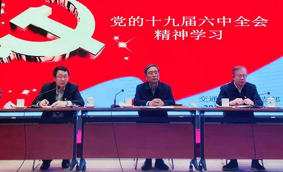 黨委書記、董事長(zhǎng)、總經(jīng)理茍護(hù)生在交通業(yè)務(wù)部黨支部宣講黨的十九屆六中全會(huì)精神