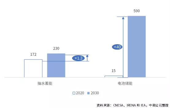 在落實(shí)“雙碳”目標(biāo)的重要背景下,我國能源結(jié)構(gòu)調(diào)整與新型電力系統(tǒng)建設(shè)勢(shì)在必行。隨著源網(wǎng)荷儲(chǔ)一體化深度協(xié)調(diào)互動(dòng),靈活的能源電力系統(tǒng)新模式將日漸顯現(xiàn)。這一進(jìn)程將催生大量儲(chǔ)能應(yīng)用場景與裝配需求,儲(chǔ)能將扮演不可替代的關(guān)鍵角色。2021年4月國家發(fā)展改革委、國家能源局印發(fā)的《關(guān)于加快推動(dòng)新型儲(chǔ)能發(fā)展的指導(dǎo)意見(征求意見稿)》(以下簡稱《指導(dǎo)意見》)強(qiáng)調(diào)儲(chǔ)能是支撐新型電力系統(tǒng)的重要技術(shù)和基礎(chǔ)裝備,對(duì)推動(dòng)能源綠色轉(zhuǎn)型、應(yīng)對(duì)極端事件、保障能源安全、促進(jìn)能源高質(zhì)量發(fā)展、實(shí)現(xiàn)碳達(dá)峰碳中和具有重要意義。 01國際、國內(nèi)儲(chǔ)能建設(shè)規(guī)模分析及預(yù)測(cè) 在碳中和背景下,國際國內(nèi)權(quán)威機(jī)構(gòu)、政府機(jī)關(guān)和中央企業(yè)結(jié)合當(dāng)前實(shí)際與發(fā)展要求,紛紛預(yù)測(cè)或提出儲(chǔ)能裝機(jī)規(guī)模的時(shí)間表、路線圖??傮w來看,在各國政府大力引導(dǎo)推動(dòng)下,國際國內(nèi)儲(chǔ)能市場將高速增長。 (一) 國際儲(chǔ)能建設(shè)規(guī)模 全球儲(chǔ)能裝機(jī)規(guī)模未來十年將高速增長。2018~2020年全球儲(chǔ)能新增裝機(jī)容量分別為5.5GW、6.3GW、6.5GW,三年年均復(fù)合增長率為3.5%。根據(jù)國際可再生能源署(IRENA)展望報(bào)告《電力儲(chǔ)存與可再生能源:2030年的成本與市場》的基本預(yù)測(cè)情景中提出,到2030年,抽水蓄能裝機(jī)將達(dá)到約230GW;另據(jù)國際能源署(IEA)《2050凈零排放:全球能源路線圖》報(bào)告中預(yù)測(cè),電池儲(chǔ)能到2030年裝機(jī)規(guī)模將達(dá)到590GW。2030年,在僅考慮抽水蓄能和電池儲(chǔ)能的情況下[1],儲(chǔ)能總裝機(jī)規(guī)模將達(dá)到約820GW,2020~2030年復(fù)合增長率約16%。 圖 1 2015-2020年全球儲(chǔ)能市場累計(jì)裝機(jī)規(guī)模(單位:GW) 電池儲(chǔ)能將成為儲(chǔ)能新增裝機(jī)的重要來源和未來儲(chǔ)能的主要裝機(jī)支撐。截至2020年底,全球儲(chǔ)能已投運(yùn)項(xiàng)目累計(jì)裝機(jī)規(guī)模為191GW,其中抽水蓄能裝機(jī)規(guī)模為172GW,占比90%,電池儲(chǔ)能裝機(jī)15GW,抽水蓄能占據(jù)絕對(duì)主導(dǎo)地位。根據(jù)IRENA和IEA預(yù)測(cè)的抽水蓄能和電池儲(chǔ)能裝機(jī)情況,到2030年,抽水蓄能裝機(jī)增加至230GW,2020~2030年復(fù)合增長率約3%,電池儲(chǔ)能裝機(jī)增加至590GW,2020~2030年復(fù)合增長率約44%。據(jù)此推算,到2030年,抽水蓄能裝機(jī)與電池儲(chǔ)能裝機(jī)比例約為1:2.5,電池儲(chǔ)能占比超過70%,成為未來儲(chǔ)能重要支撐性裝機(jī)來源。 圖 2 2020-2030年全球抽水蓄能和電池儲(chǔ)能累計(jì)裝機(jī)規(guī)模(單位:GW) (二) 國內(nèi)儲(chǔ)能建設(shè)規(guī)模 2020年我國新增儲(chǔ)能裝機(jī)2.6GW,儲(chǔ)能總裝機(jī)規(guī)模約34GW。根據(jù)CESA數(shù)據(jù),2020年我國新增儲(chǔ)能裝機(jī)2.6GW,其中抽水蓄能新增裝機(jī)容量為1.8GW,占比為69.5%,電池儲(chǔ)能新增裝機(jī)容量為0.79MW,占比30.4%。根據(jù)《中國電力行業(yè)年度發(fā)展報(bào)告2021》與CNESA數(shù)據(jù)推測(cè),截至2020年底,我國儲(chǔ)能總裝機(jī)規(guī)模約34GW,其中抽水蓄能約31GW,電池儲(chǔ)能約3GW。 到2025年,我國儲(chǔ)能裝機(jī)規(guī)模新增60GW以上,有望達(dá)到94GW?!吨笇?dǎo)意見》提出,計(jì)劃到2025年,新型儲(chǔ)能[2]裝機(jī)規(guī)模達(dá)30GW以上。此外,國家電網(wǎng)透露其在運(yùn)、在建抽水蓄能裝機(jī)規(guī)模達(dá)到62GW,“十四五”期間,將力爭新增開工20GW以上;南方電網(wǎng)透露,其到2025年將投產(chǎn)5GW抽水蓄能電站。保守估計(jì),“兩網(wǎng)”在“十四五”期間或?qū)⑿略?0GW以上抽水蓄能裝機(jī)?!笆奈濉逼陂g,我國新增抽水蓄能和電池儲(chǔ)能裝機(jī)或?qū)⒊^60GW。其中,新增裝機(jī)中一半為電池儲(chǔ)能、一半為抽水蓄能,電池儲(chǔ)能年復(fù)合增長率約為58%,抽水蓄能年復(fù)合增長率為14%,電池儲(chǔ)能增速將遠(yuǎn)高于抽水蓄能。 02 儲(chǔ)能發(fā)展面臨的挑戰(zhàn) 大力發(fā)展儲(chǔ)能已形成良好的政府間共識(shí)和技術(shù)基礎(chǔ),但仍面臨重重挑戰(zhàn)。 (一) 建設(shè)成本仍高昂,商業(yè)模式不清晰 電池儲(chǔ)能雖然相較其他儲(chǔ)能而言具備綜合性成本優(yōu)勢(shì),但全生命周期度電成本仍然偏高,位于0.5~1.5元/kwh之間,遠(yuǎn)高于進(jìn)入平價(jià)時(shí)代的風(fēng)光電價(jià)。據(jù)專家預(yù)測(cè),在目前體制機(jī)制下,儲(chǔ)能度電成本需要下降到0.1~0.3元,行業(yè)內(nèi)多數(shù)企業(yè)才能具備足夠的承擔(dān)能力,方可形成在全國大面積鋪開的商業(yè)模式。 (二)政策形勢(shì)不明朗,資本觀望氛圍濃 儲(chǔ)能對(duì)傳統(tǒng)電力系統(tǒng)而言是新生事物,相關(guān)部委關(guān)于儲(chǔ)能未來科學(xué)合理的監(jiān)管模式尚未達(dá)成共識(shí)。導(dǎo)致了行業(yè)發(fā)展在效率考量與安全考慮間徘徊、在政府主導(dǎo)與市場自主間徘徊,傳導(dǎo)至資本市場則體現(xiàn)為投資的忽冷忽熱,不利于形成穩(wěn)