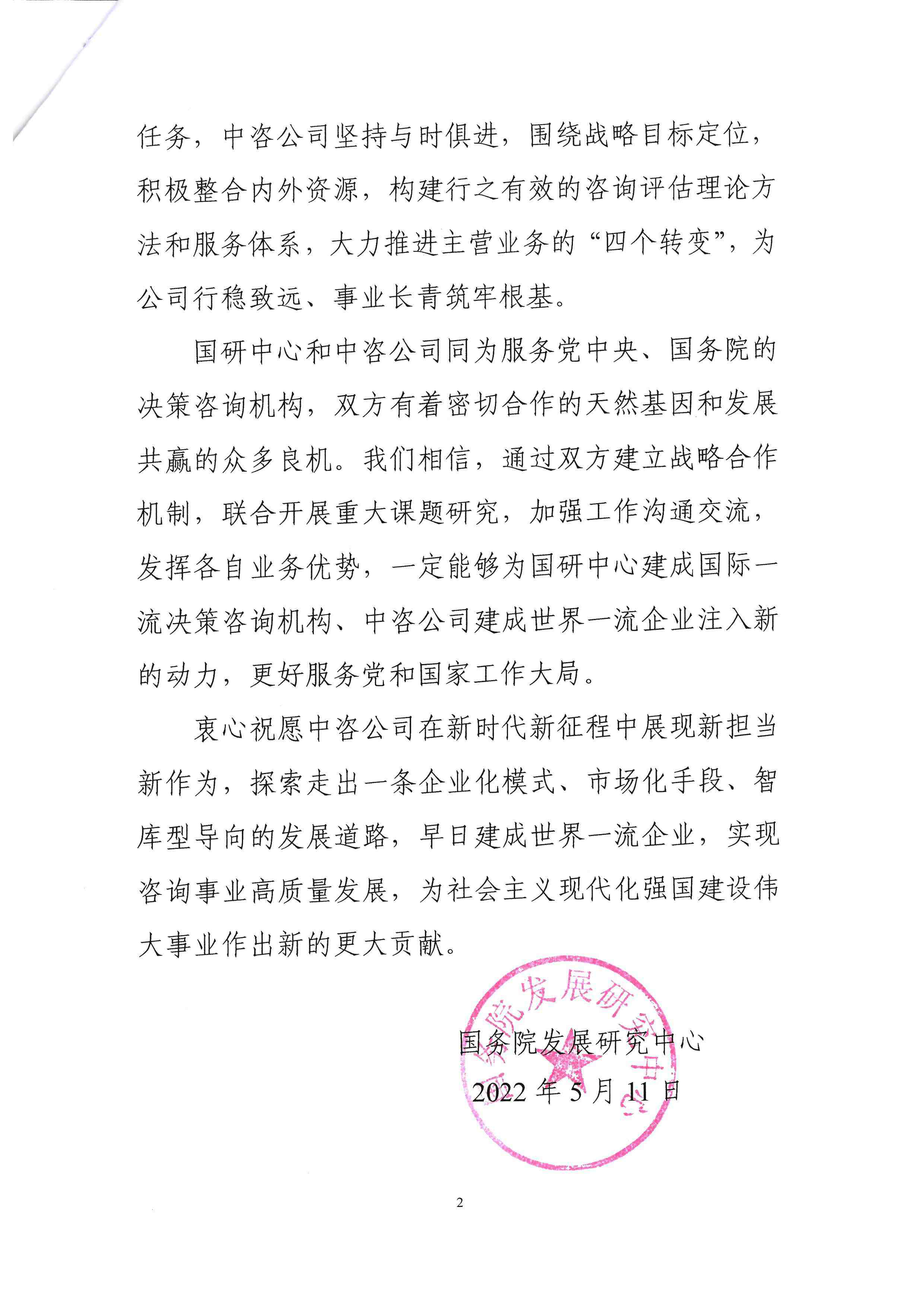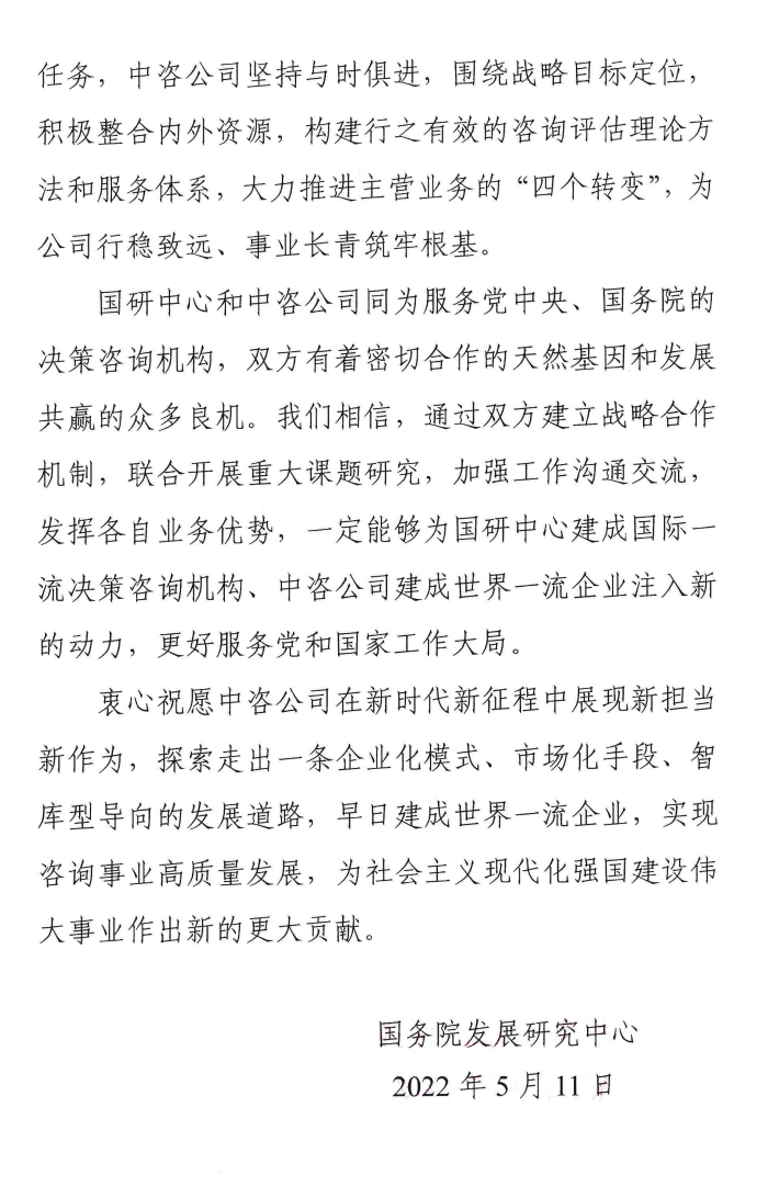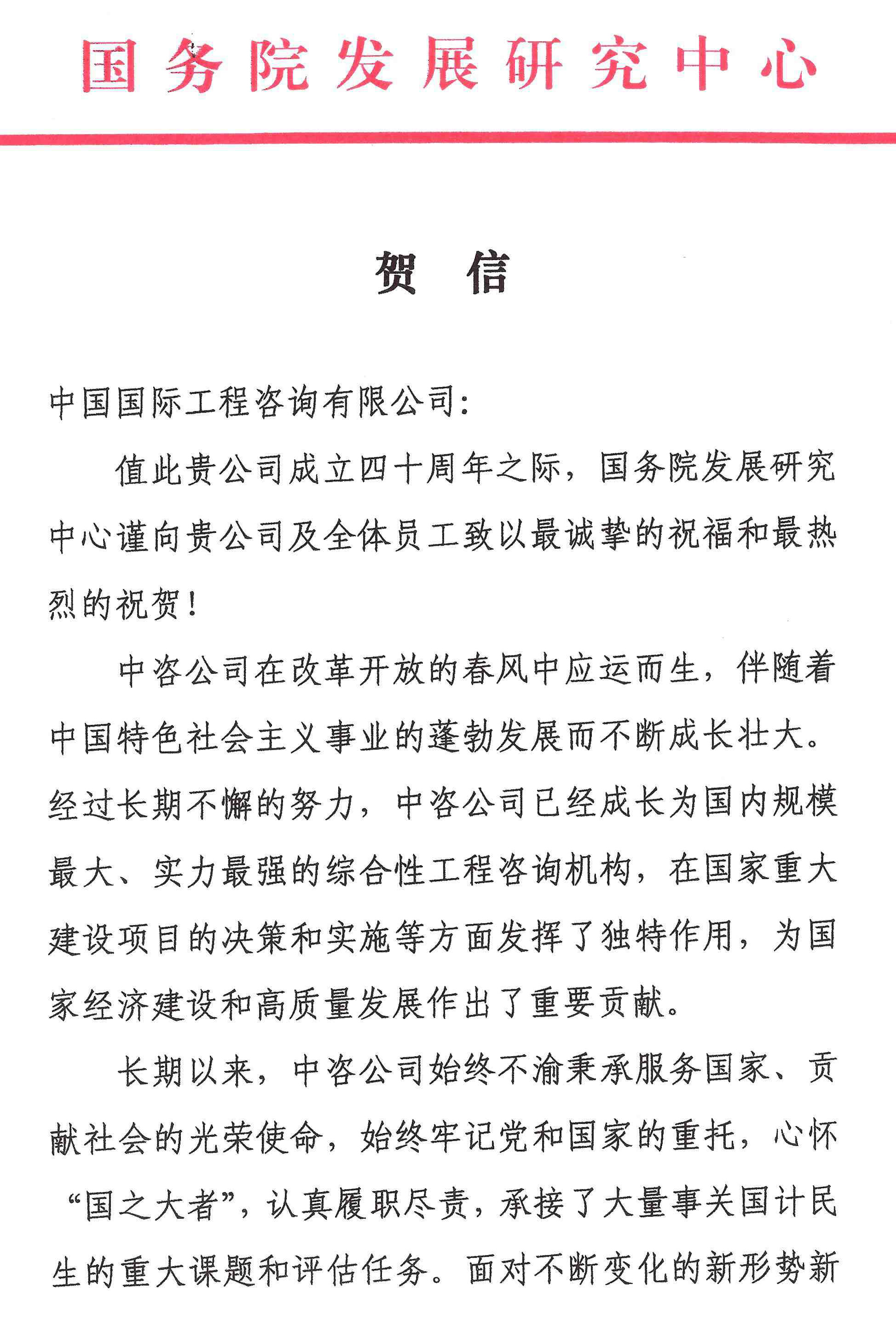 國務(wù)院發(fā)展研究中心發(fā)來賀信