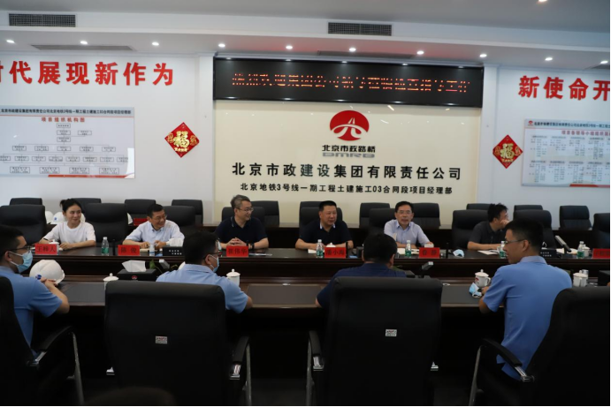 26日下午,潘小海一行首先前往北京地鐵3號(hào)線一期工程01合同段施工監(jiān)理項(xiàng)目部進(jìn)行安全巡檢,通過聽取項(xiàng)目匯報(bào)、考察施工現(xiàn)場(chǎng)、開展座談交流等,了解項(xiàng)目運(yùn)行情況。