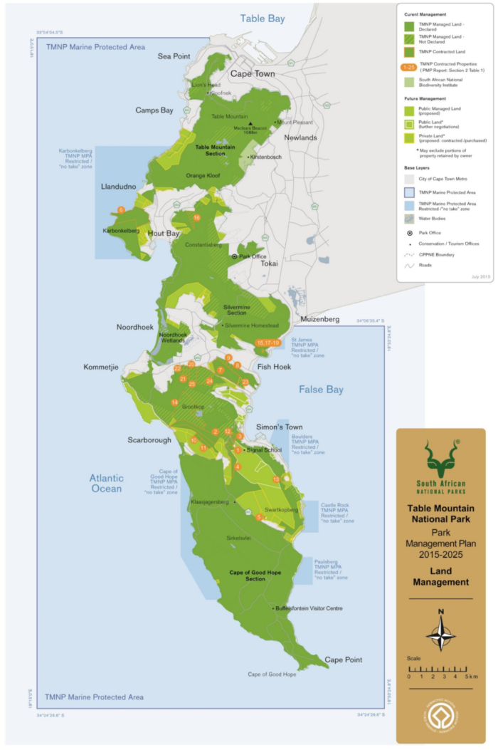 摘要:國(guó)家公園是一種保障國(guó)土生態(tài)安全、提升生態(tài)系統(tǒng)服務(wù)功能、推動(dòng)自然資源科學(xué)保護(hù)、開展國(guó)民精神教育、促進(jìn)地方綠色發(fā)展等多重目標(biāo)的有效模式。本文以南非的桌山國(guó)家公園和肯尼亞馬賽馬拉國(guó)家公園為例,簡(jiǎn)要介紹其基本概況、主要做法和成效,結(jié)合我國(guó)自然保護(hù)地發(fā)展實(shí)際情況,提出加快自然保護(hù)地申報(bào)建設(shè)、擴(kuò)大生物多樣性保護(hù)范圍、高度重視當(dāng)?shù)鼐用駞⑴c保護(hù)和建設(shè)、強(qiáng)化宣傳教育等建議。 關(guān)鍵詞: 國(guó)家公園;生物多樣性;南非;桌山;肯尼亞; 馬賽馬拉 一、南非、肯尼亞保護(hù)地基本情況 (一)南非保護(hù)地概況 南非共和國(guó)位于非洲大陸最南端,地處大西洋和印度洋交界處,東、南、西三面臨海。國(guó)土面積121.91萬平方公里,2022年人口6060.5萬人,國(guó)內(nèi)生產(chǎn)總值66383.46億蘭特(約合4052.38億美元),人均GDP109535蘭特(約合6687美元)。南非交通通訊等基礎(chǔ)設(shè)施具有較高水平,建筑樣式和行為法則均效仿歐洲。 南非擁有極為豐富的自然和人文旅游資源,是世界著名旅游度假勝地,是非洲接待國(guó)際游客最多的國(guó)家。2019年接待游客1022.8萬人,受新冠肺炎疫情影響,2021年游客量降至225.6萬人,2022年恢復(fù)至569.8萬人(圖1)。 圖1 南非共和國(guó)2019~2022年月度游客量統(tǒng)計(jì)變化 來源:南非統(tǒng)計(jì)局 南非有24個(gè)國(guó)家公園,涵蓋野生動(dòng)物保護(hù)、濕地保護(hù),海洋保護(hù)、森林生態(tài)保護(hù)等類型(圖2)。其中,桌山國(guó)家公園是其典型代表。 圖2 南非自然保護(hù)地分布圖[1] 桌山國(guó)家公園從開普敦的桌山綿延至大西洋與印度洋相交的海角處,占地面積221平方公里,幾乎跨越了整個(gè)開普省,是開普花卉世界遺產(chǎn)地(the Cape Floral Region World Heritage Site,2004)的一部分。桌山國(guó)家公園2/3的面積沒有設(shè)門卡點(diǎn),供人自由進(jìn)出。盡管公園有很多入口,但僅有4個(gè)是收費(fèi)的,以著名的桌山為公園主體,還包括開普角、好望角、企鵝灘、海豹島等保護(hù)區(qū)。桌山和開普角的游客量超過85萬人/年,企鵝灘的游客量每年也超過65萬人。通過無門入口不付費(fèi)進(jìn)出的游客量每年大概有400萬人[1]。 桌山,因一座臨海的山峰頂如桌面而得名,是“世界新七大自然奇觀”之一,最高海拔1088米。桌山擁有世界上最大規(guī)模的瀕危物種,主要植被類型是瀕危的半島砂巖凡波斯和極度瀕危的半島花崗巖凡波斯。桌山植被是開普植物保護(hù)區(qū)的一部分,估計(jì)有2285種植物(超過1100種是鄉(xiāng)土植物物種)被記錄在冊(cè),最常見的野生動(dòng)物是蹄兔,還有豪豬、貓鼬、蛇和龜?shù)取?/span> 圖3 南非桌山國(guó)家公園(攝影:張同升) 好望角自然保護(hù)區(qū)位于開普半島南端,始建于1939年,占地7750公頃,海岸線綿延40多公里,有100多處海灘,由西向東分成三個(gè)部分,即好望角、麥克萊爾角和開普角,其中開普角海拔238米,崖頂有始建于1857年的燈塔,登臨遠(yuǎn)眺,海天一色。植物有1200余種,遺存有世界上為數(shù)不多的金黃色帝王花;動(dòng)物有狒狒、開普斑馬等,鳥類有鴕鳥、黑鷹等250余種。 圖4 好望角(攝影:張同升) 企鵝灘保護(hù)區(qū)位于開普敦西蒙鎮(zhèn)的博德斯海灘(Boulders Beach)。這里的企鵝身材瘦小,喙前端有一圈淡白色的圓環(huán),整個(gè)足部以下全為黑色,只在非洲大陸南端的開普敦海域出現(xiàn),故名斑嘴環(huán)企鵝、黑足企鵝、非洲小企鵝。1910年時(shí)非洲企鵝約有150萬只,上世紀(jì)初期開普敦附近水域數(shù)起沉船漏油事件污染了企鵝的居住地,使得大部分企鵝死亡,只剩下不到原數(shù)量7%的非洲小企鵝得以生存與繁殖。1982年,2只非洲小企鵝來到博德斯海灘安家,當(dāng)?shù)鼐用褡园l(fā)進(jìn)行保護(hù),1983年,建立博德斯企鵝保護(hù)區(qū)。到2005年,這里的企鵝數(shù)量已達(dá)到3900只。受棲息地破壞、原油泄漏和其他海洋污染、氣候變暖導(dǎo)致魚群變遷及本地動(dòng)物的傷害、過度捕撈、大量旅游活動(dòng)沖突等因素影響,到2011年,保護(hù)區(qū)內(nèi)還剩下2100只企鵝。目前又逐漸恢復(fù)到3000多只[2]。 海豹島是開普敦豪特灣海域中的一個(gè)長(zhǎng)條形礁石島。每天上千只海豹成群結(jié)隊(duì)地登上礁石棲息,這些海豹屬于開普軟毛海豹,是南部非洲的本土品種,繁殖于南非及納米比亞的海岸線上,壽命20~40年。來往的漁民沒有對(duì)這些唾手可得的漁貨動(dòng)心,而是自發(fā)性地進(jìn)行保護(hù),附近海域禁漁,嚴(yán)禁旅游觀光人員登島,避免干擾其生活環(huán)境。 圖5 海豹島(攝影:陳子琦) (二)肯尼亞保護(hù)地概況 肯尼亞共和國(guó)位于非洲東部,毗鄰阿拉伯海,赤道橫貫中部,面積58.26萬平方公里,2022年人口5608.2萬人。世界銀行GDP國(guó)別統(tǒng)計(jì)數(shù)據(jù)顯示,2021年肯尼亞國(guó)內(nèi)生產(chǎn)總值1103.5億美元,人均GDP1704.97美元??夏醽喚硟?nèi)多高原,平均海拔1500米,自然環(huán)境優(yōu)美,常年氣候溫和,以擁有眾多國(guó)家公園和自然保護(hù)區(qū)而聞名。明代鄭和下西洋時(shí)曾到過肯尼亞濱海城市蒙巴薩和馬林迪??夏醽嗈r(nóng)業(yè)增加值占GDP