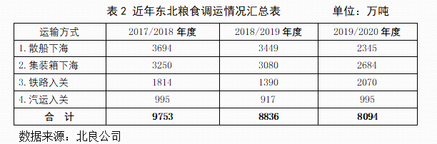 路上運距劣勢明顯,糧食物流集疏方式相對單一。近年來,“北糧南運”下海港口不斷北移以縮短路上運距及運輸成本,北良港距離主產(chǎn)區(qū)較遠(yuǎn),陸上運距劣勢導(dǎo)致“北糧南運”規(guī)模萎縮。建港之初北良港大規(guī)模利用散糧車進(jìn)行糧食集疏港,集疏能力和運行效率優(yōu)勢突出。但伴隨集裝箱“一箱到底”以及鐵路敞頂箱的推廣,散糧車的運費成本從優(yōu)勢變?yōu)榱觿?。相比而言,盤錦、錦州、營口等后發(fā)港口的糧食內(nèi)貿(mào)運輸方式更為多樣、復(fù)合,可靈活適應(yīng)更多中小客戶的需求。