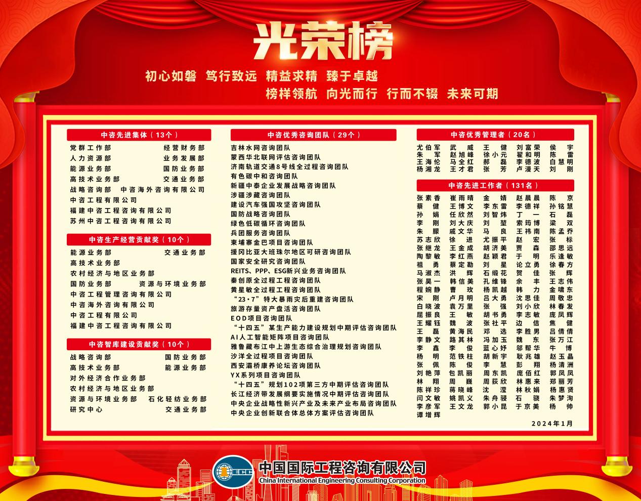 闊步新征程,昂首向未來(lái)。1月30日,中咨公司召開(kāi)2024年度工作會(huì)議。會(huì)議的主要任務(wù)是,以習(xí)近平新時(shí)代中國(guó)特色社會(huì)主義思想為指導(dǎo),全面貫徹黨的二十大、二十屆二中全會(huì)精神和二十屆中央紀(jì)委三次全會(huì)精神,落實(shí)中央經(jīng)濟(jì)工作會(huì)議部署和中央企業(yè)負(fù)責(zé)人會(huì)議要求,全面總結(jié)公司2023年工作,聚焦新時(shí)代新征程面臨的新形勢(shì)新任務(wù),謀劃下一階段落實(shí)好“五五戰(zhàn)略”的具體路徑,部署2024年重點(diǎn)任務(wù),推動(dòng)公司高質(zhì)量發(fā)展再創(chuàng)新局面。 公司黨委書記、董事長(zhǎng)、總經(jīng)理茍護(hù)生作《扎實(shí)推動(dòng)“五五戰(zhàn)略”落地生根 奮力開(kāi)創(chuàng)公司高質(zhì)量發(fā)展新局面》主題報(bào)告。黨委委員、總會(huì)計(jì)師王麗靜主持會(huì)議。黨委委員、中咨戰(zhàn)略研究院執(zhí)行院長(zhǎng)竇皓宣讀《公司黨委關(guān)于表彰2023年度先進(jìn)集體和先進(jìn)個(gè)人的決定》。黨委委員、副總經(jīng)理潘小海傳達(dá)中央經(jīng)濟(jì)工作會(huì)議、中央企業(yè)負(fù)責(zé)人會(huì)議、全國(guó)發(fā)展和改革工作會(huì)議精神。黨委委員、副總經(jīng)理沈浩傳達(dá)國(guó)務(wù)院國(guó)資委黨風(fēng)廉政建設(shè)和反腐敗工作會(huì)議精神。國(guó)家審計(jì)署企業(yè)審計(jì)八局有關(guān)同志以及公司外部董事楊愛(ài)民、余德輝出席會(huì)議。會(huì)議期間還表彰了2023年度先進(jìn)集體和個(gè)人以及簽訂2024年度經(jīng)營(yíng)考核責(zé)任書。 會(huì)議指出,2023年,公司深入開(kāi)展習(xí)近平新時(shí)代中國(guó)特色社會(huì)主義思想主題教育,堅(jiān)定不移落實(shí)“五五戰(zhàn)略”,加快建設(shè)國(guó)家高端智庫(kù)和世界一流咨詢機(jī)構(gòu),在服務(wù)中央科學(xué)決策和國(guó)家重大戰(zhàn)略方面做出突出貢獻(xiàn),核心功能和核心競(jìng)爭(zhēng)力更加凸顯,圓滿完成國(guó)資委各項(xiàng)考核指標(biāo)。公司咨詢服務(wù)工作得到委托方高度認(rèn)可,收到中央部委、地方政府、大型企事業(yè)單位等各方感謝信240封,100多名個(gè)人和團(tuán)隊(duì)受到表?yè)P(yáng)。公司榮獲菲迪克“卓越工程項(xiàng)目獎(jiǎng)”“優(yōu)秀工程項(xiàng)目獎(jiǎng)”各1項(xiàng)、魯班獎(jiǎng)4項(xiàng)、國(guó)家優(yōu)質(zhì)工程獎(jiǎng)9項(xiàng),獲得“2023年度誠(chéng)信經(jīng)營(yíng)守信踐諾標(biāo)桿企業(yè)”榮譽(yù)稱號(hào)。 會(huì)議從九個(gè)方面系統(tǒng)回顧過(guò)去一年的主要業(yè)績(jī)。智庫(kù)建設(shè)勇攀高峰,上報(bào)決策咨詢成果數(shù)量、質(zhì)量雙雙再創(chuàng)歷史新高;服務(wù)國(guó)家戰(zhàn)略做出新貢獻(xiàn),在服務(wù)國(guó)家重大戰(zhàn)略規(guī)劃評(píng)估、國(guó)家重大工程建設(shè)、高水平支撐現(xiàn)代化產(chǎn)業(yè)體系建設(shè)和科技自立自強(qiáng)、踐行綠色發(fā)展理念、助力“一帶一路”行穩(wěn)致遠(yuǎn)、保障國(guó)防軍工建設(shè)、服務(wù)國(guó)資央企高質(zhì)量發(fā)展等方面展現(xiàn)擔(dān)當(dāng)作為;生產(chǎn)經(jīng)營(yíng)逆勢(shì)上揚(yáng),“一利”穩(wěn)定增長(zhǎng),“五率”持續(xù)優(yōu)化;業(yè)務(wù)結(jié)構(gòu)持續(xù)優(yōu)化,新興業(yè)務(wù)穩(wěn)步增長(zhǎng),總部部門與所屬企業(yè)協(xié)同效應(yīng)更加突出,“6+1”全過(guò)程咨詢產(chǎn)業(yè)鏈條進(jìn)一步完善;深化改革實(shí)現(xiàn)新突破,形成新時(shí)期推動(dòng)公司高質(zhì)量發(fā)展的“五五戰(zhàn)略”,新一輪改革深化提升行動(dòng)高質(zhì)量起步,董事會(huì)運(yùn)行更加規(guī)范、作用更加突出;建設(shè)世界一流咨詢機(jī)構(gòu)邁出堅(jiān)實(shí)步伐,在對(duì)標(biāo)世界一流價(jià)值創(chuàng)造、豐富資質(zhì)體系、品牌引領(lǐng)、區(qū)域化布局、數(shù)字化運(yùn)營(yíng)、標(biāo)準(zhǔn)化建設(shè)、財(cái)務(wù)信息化、干部選任、專家隊(duì)伍建設(shè)、智庫(kù)成果發(fā)布等方面取得新成效;風(fēng)險(xiǎn)內(nèi)控工作持續(xù)加強(qiáng),推進(jìn)審計(jì)全覆蓋,健全合規(guī)管理體系,安全生產(chǎn)形勢(shì)總體穩(wěn)定;黨的建設(shè)開(kāi)創(chuàng)新局面,在主題教育中一體推進(jìn)理論學(xué)習(xí)、調(diào)查研究、推動(dòng)發(fā)展、檢視整改,宣傳思想、工會(huì)、統(tǒng)戰(zhàn)、團(tuán)青等各項(xiàng)工作邁上新臺(tái)階;全面從嚴(yán)治黨縱深推進(jìn),突出政治監(jiān)督,做實(shí)日常監(jiān)督,加強(qiáng)作風(fēng)建設(shè),開(kāi)展紀(jì)檢干部隊(duì)伍教育整頓和巡查式、回訪式、機(jī)動(dòng)式巡視,黨風(fēng)廉政建設(shè)和反腐敗工作走深走實(shí)。公司各項(xiàng)工作全面推進(jìn),呈現(xiàn)穩(wěn)中求進(jìn)、進(jìn)中向好的發(fā)展態(tài)勢(shì)。 茍護(hù)生表示,在經(jīng)濟(jì)下行壓力大、改革發(fā)展任務(wù)重、矛盾風(fēng)險(xiǎn)挑戰(zhàn)多的背景下,公司取得發(fā)展成績(jī)殊為不易,根本在于以習(xí)近平同志為核心的黨中央堅(jiān)強(qiáng)領(lǐng)導(dǎo),是國(guó)務(wù)院的信任和各部委