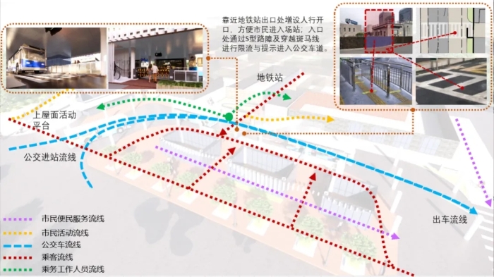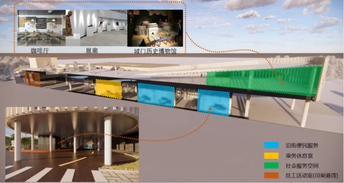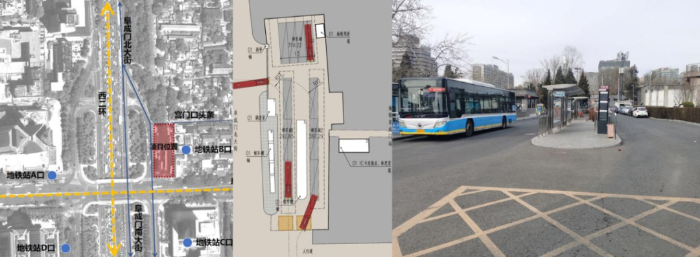 TOR模式驅(qū)動(dòng)的首都核心功能區(qū) 公交場站提質(zhì)更新探索 楊曦 商祥波 彭翔 摘要:公交場站是城市公共交通的末梢神經(jīng),在城市公共出行與服務(wù)方面持續(xù)發(fā)揮重要作用。文章針對(duì)首都功能核心區(qū)內(nèi)公交場站提質(zhì)更新的內(nèi)在需求,通過兩處TOR模式驅(qū)動(dòng)下試點(diǎn)公交場站的更新方案作為具體案例,試圖從城市形象及公共空間等方面為功能核心區(qū)內(nèi)公共交通設(shè)施的更新活動(dòng)提供新的模式和思路。 關(guān)鍵詞:TOR模式;首都核心功能區(qū);公交場站;更新 一、引言 公共交通場站用地作為城市規(guī)劃用地分類中的專門類型,承擔(dān)著城市公共基礎(chǔ)設(shè)施和公共交通的末梢神經(jīng)的職能。公交場站的建設(shè)內(nèi)容既包含公交車輛的出入調(diào)度、司乘員工的工作休息等內(nèi)部功能,也包含社會(huì)乘客候車落客的外部需求。功能需求的二元性,使公交場站具有落客區(qū)半開放、內(nèi)部運(yùn)轉(zhuǎn)區(qū)半封閉的的空間屬性。 2020年8月,中共中央、國務(wù)院正式批復(fù)《首都功能核心區(qū)控制性詳細(xì)規(guī)劃(街區(qū)層面)(2018年—2035年)》(以下簡稱《控規(guī)》),92.5k㎡的北京東西城,正式定義為“首都功能核心區(qū)”?!犊匾?guī)》作為首都功能核心區(qū)控制性詳細(xì)規(guī)劃,不僅明確了首都核心功能區(qū)的戰(zhàn)略定位,也充分注重整體與歷史文化街區(qū)的保護(hù),以推動(dòng)老城的復(fù)興;《控規(guī)》還要求構(gòu)建優(yōu)質(zhì)均衡的公共服務(wù)體系,提升人居環(huán)境質(zhì)量,促進(jìn)首都的可持續(xù)發(fā)展。首都功能核心區(qū)內(nèi)現(xiàn)有公交場站七十余處,伴隨近代北京城市公交百余年的發(fā)展,這批已有數(shù)十載歷史的公交場站,在維持首都核心功能區(qū)日常公共交通運(yùn)轉(zhuǎn)上發(fā)揮著重要作用。它們既是北京公共交通事業(yè)發(fā)展歷程的親歷者,也是北京公共交通體系最重要的有形固定資產(chǎn)之一。 圖1 首都核心功能區(qū)公交場站布局規(guī)劃 通過實(shí)地調(diào)研首都核心功能區(qū)部分既有場站發(fā)現(xiàn),各場站均出現(xiàn)不同程度的老舊化與破損。更新維護(hù)模式,以定期墻和地面的常規(guī)粉刷、替換老舊裝飾材料及物業(yè)設(shè)備等的日常性維修改善為主,大多聚焦維持現(xiàn)狀使用功能。導(dǎo)致了部分場站逐漸與周邊核心功能區(qū)的形象風(fēng)貌與服務(wù)功能產(chǎn)生了距離。對(duì)存量公交場站實(shí)施提質(zhì)更新,既是《控規(guī)》中對(duì)于核心功能區(qū)場站轉(zhuǎn)型與升級(jí)的需要,也是留住場站、凝聚人氣,延續(xù)北京公交場所記憶的必要措施。 隨著城市化率的提高,激發(fā)城市的內(nèi)在活力、促進(jìn)城市可持續(xù)發(fā)展,成為世界上步入高城市化率國家共同面臨的問題。而首都行政區(qū)多為各國優(yōu)先考慮的地區(qū),許多國家都通過加大首都舊有街區(qū)內(nèi)的城市公共交通設(shè)施更新投入的方法,達(dá)到激發(fā)公交系統(tǒng)所覆蓋街區(qū)城市活力的目的。發(fā)達(dá)國家為我們提供了一些公共交通場站更新的成功案例。 例如,城市公共交通系統(tǒng)發(fā)源地英國倫敦,提出了城市公共交通Crossrail 1計(jì)劃,持續(xù)三十多年,2022年終于完工。該工程串聯(lián)起橫貫城市東西的多處車站,以交通樞紐為核心,對(duì)公共空間進(jìn)行綜合、持續(xù)的更新活動(dòng)。每個(gè)車站的改造都非常重視從當(dāng)?shù)貧v史環(huán)境中吸取靈感來賦予車站以特色。更新改造后的車站也是推動(dòng)倫敦帕丁頓、利物浦街、法靈頓等地區(qū)等復(fù)興計(jì)劃的關(guān)鍵力量[1]。 日本東京秋葉原地區(qū)有著百年歷史的萬世橋車站,歷經(jīng)地震、東京城市交通線路升級(jí)而被廢棄。通過整體系統(tǒng)性規(guī)劃,車站被定位為摩登又復(fù)古的創(chuàng)意生活街區(qū),2000㎡的原場站成為了潮流聚集地及熱門打卡圣地,盤活了整個(gè)地區(qū)。實(shí)現(xiàn)了從“昔日東京門戶”到“今天復(fù)古潮玩街區(qū)”的轉(zhuǎn)變。 圖2 更新改造后的東京萬世橋車站 二、場站現(xiàn)狀及問題梳理 (一)場站概況 2022年4月,我們開始參與首都核心功能區(qū)內(nèi)既有場站綜合提升項(xiàng)目。試點(diǎn)方案選取沿北京城市中軸線大致呈鏡像關(guān)系兩處典型公交場站。兩座試點(diǎn)場站在規(guī)模、現(xiàn)狀等屬性上接近,同時(shí)又有各自特點(diǎn):場站規(guī)模上,兩處露天場站為面積1500-1800㎡的小型公交車首末站,運(yùn)營期實(shí)際停車量15-20輛,滿足2-3路車輛運(yùn)行。因場地有限,通道式車行道與停車場結(jié)合,車道旁設(shè)落客區(qū),站內(nèi)一側(cè)修建單層平房作為內(nèi)部管理功能房間。 城市區(qū)位上,兩場站位于北京傳統(tǒng)四九城的二環(huán)內(nèi)附近。二環(huán)路不僅是歷史上北京城墻與護(hù)城河的位置,也是首都核心功能區(qū)的主動(dòng)脈?!犊匾?guī)》首章關(guān)于空間布局要求強(qiáng)化“兩軸、一城、一環(huán)”的城市空間結(jié)構(gòu)?!耙画h(huán)”即沿二環(huán)路的文化景觀環(huán)線,建設(shè)展示歷史人文景觀和現(xiàn)代化首都風(fēng)