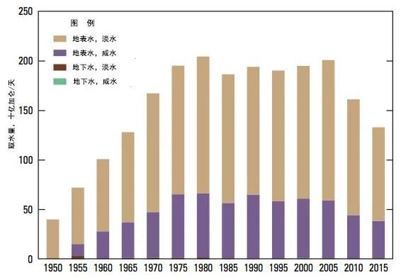 圖5 1950-2015年美國(guó)熱電用水量變化態(tài)勢(shì)