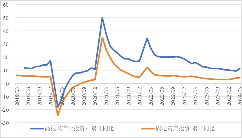 今年以來,我國經濟發(fā)展質效穩(wěn)步提升,投資結構不斷優(yōu)化,投資對發(fā)展的關鍵作用持續(xù)發(fā)揮。但受房地產投資低迷等因素影響,整體投資增速較上年同期有所放緩,民間投資活力仍待激發(fā)。下階段,需適時推進及用好中央預算內資金、萬億增發(fā)國債、地方政府專項債、超長期特別國債等政策工具,大規(guī)模推動制造業(yè)設備更新,持續(xù)激發(fā)民間投資活力,多措并舉消化存量房產,積極擴大有效益的投資,促進經濟平穩(wěn)健康發(fā)展。 一、一季度整體投資增速保持平穩(wěn) 2024年一季度,我國固定資產投資(不含農戶)同比增長4.5%,增速較上年同期下降0.6個百分點。建安工程、設備工器具購置分別增長4.6%、17.6%,設備工器具購置投資增速明顯高于建安工程投資增速,較2023年全年提高11個百分點,說明技術改造升級和設備更新市場潛力巨大,體現(xiàn)技術水平的設備工器具投入增長加快。 圖1 全國固定資產投資增速(%) 數(shù)據(jù)來源:國家統(tǒng)計局,Wind數(shù)據(jù)庫 (一)在資金支持和政策推動下,基礎設施投資支撐有力。今年2月底前,上年四季度增發(fā)的1萬億國債已全部下達,各地加快增發(fā)國債項目的開工建設,基礎設施投資穩(wěn)定增長。一季度基礎設施投資同比增長6.5%,較1—2月加快0.2個百分點,拉動全部投資增長1.4個百分點。其中,完成水利基礎設施投資1933億元,同比增長4.4%,為歷史同期最多;完成交通固定資產投資7205億元,同比增長13.3%;截至2月底全國能源重點項目完成投資約2680億元,同比增長17.2%。新型基礎設施建設穩(wěn)步發(fā)展,“雙千兆”網絡部署有序推進,累計建成5G基站364.7萬個,5G用戶普及率突破60%,千兆城市達到207個,梯次算力基礎設施架構加快構建。 表1 1—3月我國各行業(yè)固定資產投資情況 數(shù)據(jù)來源:國家統(tǒng)計局,Wind數(shù)據(jù)庫 (二)高技術產業(yè)投資繼續(xù)發(fā)揮引領帶動作用。一季度,制造業(yè)投資同比增長9.9%,拉動全部投資增長2.4個百分點。41個工業(yè)大類行業(yè)中,電子、汽車等37個行業(yè)增加值保持增長,增長面較去年擴大22個百分點。工業(yè)領域大規(guī)模設備更新和消費品以舊換新政策加快釋放市場空間,汽車銷量同比增長10.6%,家電類商品消費同比增長5.8%。3月,制造業(yè)采購經理指數(shù)(PMI)回升到景氣區(qū)間,達到了50.8%。 圖2 三大領域固定資產投資增速(累計同比,%) 數(shù)據(jù)來源:國家統(tǒng)計局,Wind數(shù)據(jù)庫 一季度高技術產業(yè)投資同比增長11.4%,其中高技術制造業(yè)和高技術服務業(yè)投資分別增長10.8%、12.7%。新興產業(yè)加快發(fā)展,3D打印設備、服務機器人產量分別增長40.6%、26.7%;創(chuàng)新成果不斷涌現(xiàn),300兆瓦級F級重型燃氣輪機首臺樣機總裝下線;人工智能與制造業(yè)深度融合,全國已建成近萬家數(shù)字化車間和智能工廠,已培育421家國家級智能制造示范工廠;生產性服務業(yè)發(fā)展提速,信息傳輸、軟件和信息技術服務業(yè)增加值增長13.7%。新興產業(yè)典型產品呈現(xiàn)較快增長勢頭,一季度太陽能電池增長20.1%,與光伏相關的多晶硅、單晶硅增速超過50%,新能源汽車產銷分別增長28.2%、31.8%。 圖3 高技術產業(yè)投資增速對比整體投資增速 (累計同比,%) 數(shù)據(jù)來源:國家統(tǒng)計局,Wind數(shù)據(jù)庫 (三)房地產投資仍然低迷,支持房地產穩(wěn)定發(fā)展政策效果逐漸顯現(xiàn)。一季度,全國房地產開發(fā)投資22082億元,同比下降9.5%。其中,住宅投資16585億元,下降10.5%。房地產開發(fā)投資占固定資產投資完成額的比重降至22.07%,較上年同期下降2.14個百分點。房屋施工面積、房屋新開工面積等先行指標均出現(xiàn)明顯下滑,分別同比下降11.1%、27.8%。3月,國房景氣指數(shù)為92.07,連續(xù)第四個月下降。一線城市二手住宅銷售價格環(huán)比下降0.7%,二、三線城市二手住宅銷售價格均環(huán)比下降0.5%,國內大中城市房價仍呈持續(xù)下降趨勢。 今年以來,各地加大了支持房地產穩(wěn)定發(fā)展的政策力度,包括降低貸款利率、放松限購、住房“以舊換新”等,一季度我國新建商品房銷售面積和銷售額比1—2月降幅分別收窄了1.1、1.7個百分點。去年中央金融工作會議后,中央及各地加大了保障性住房建設、“平急兩用”公共基礎設施建設、城中村改造等“三大工程”推進力度,積極構建房地產新發(fā)展模式。國家統(tǒng)計局數(shù)據(jù)顯示,“三大工程”拉動房地產投資0.6個百分點,政策舉措成效顯著。 (四)區(qū)域投資形勢整體向好,東北地區(qū)投資增速領先。2024年一季度,我國東北地區(qū)一批重大項目加快落地,投資大幅增長9.6%,較全國水平高了5.1個百分點;京津冀、長三角、粵港澳大灣區(qū)等動力源地區(qū)經濟較快增長,東部地區(qū)投資同比增長5.7%,較全國水平高了1.2個百分點;中西部地區(qū)產業(yè)加快轉型升級,投資分別增長4.1%、1.4%。 圖4 分地區(qū)固定資產投資增速(累計同比,%) 數(shù)據(jù)來源:國家統(tǒng)計局,Wind數(shù)據(jù)庫 2024年一季度,31個省份中有20個省投資增速高于全國水平,其中西藏、內蒙古、黑龍江、北京、新疆、甘肅等6省實現(xiàn)兩位數(shù)增長,江西、云南、廣西等3省投資出現(xiàn)負增長,分別同比下降1.1%、8.1%、20.4%。 表2 1—3月全國各省固