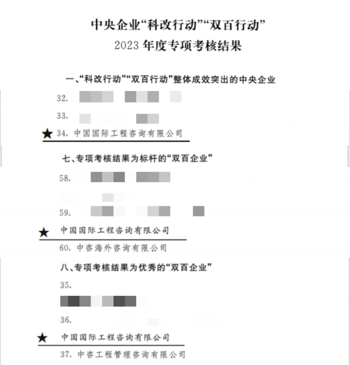 中咨公司在中央企業(yè)“科改行動”“雙百行動”2023年度專項考核中取得佳績