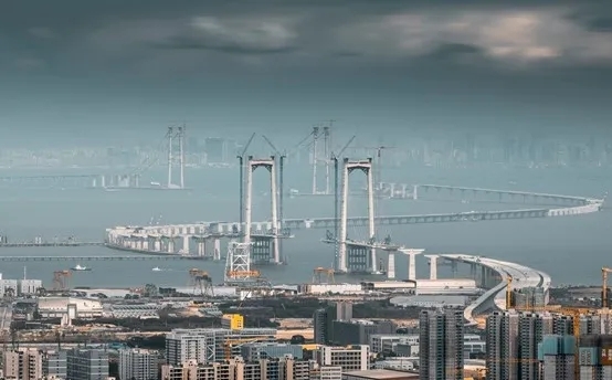 如今,放眼望去,在浩瀚的伶仃洋上,深中通道的橋梁宛如巨龍一般,在水面上蜿蜒出優(yōu)美弧線,兩邊海天一色,開闊而壯觀。76.5米的世界最高通航凈高,距離海面相當(dāng)于26層樓的高度,可以容納兩艘上下疊置的泰坦尼克號(hào)通過。