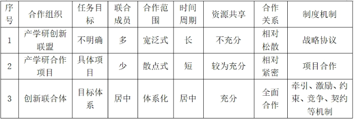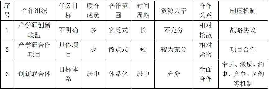 表3 不同產(chǎn)學(xué)研合作組織比較