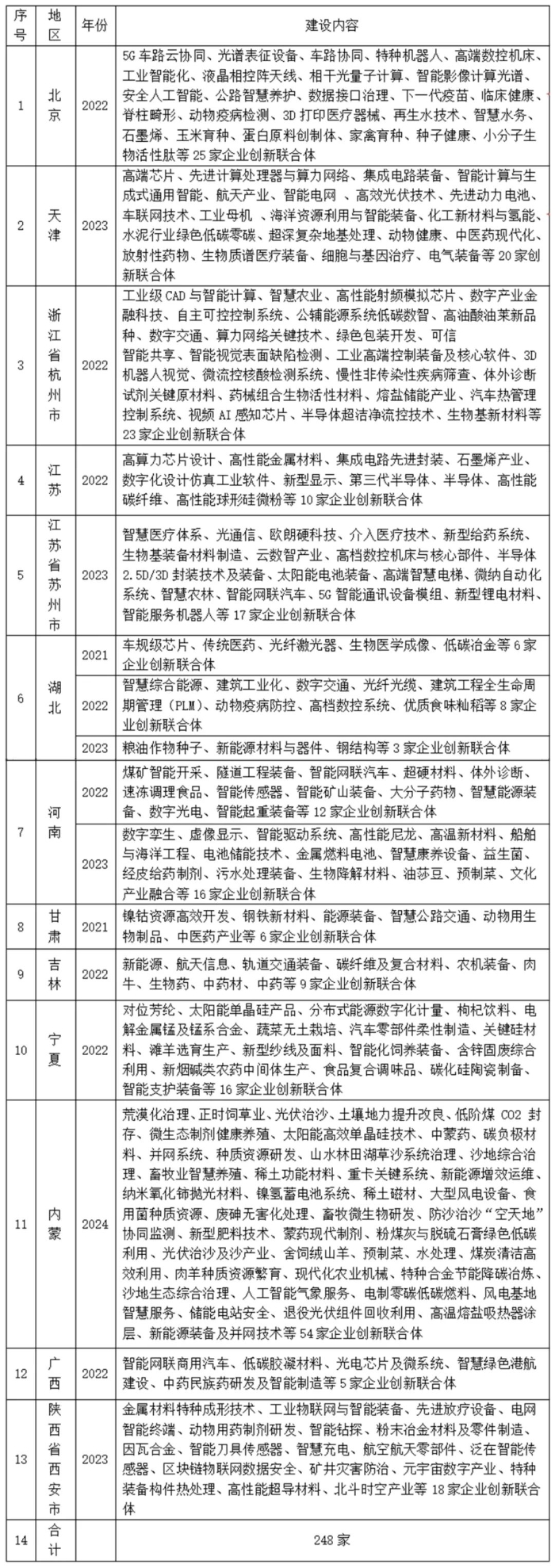 目前,已有北京、天津、浙江等20多個省市將聯(lián)合體寫入政府工作報告,進行重點工作部署(見表1),出臺建設(shè)指引文件,從布局優(yōu)化、主體協(xié)同、要素集聚、政策支持等方面,推動聯(lián)合體建設(shè)縱深推進,聯(lián)合創(chuàng)新效能不斷釋放,協(xié)同創(chuàng)新格局加快形成,集群發(fā)展生態(tài)持續(xù)完善。