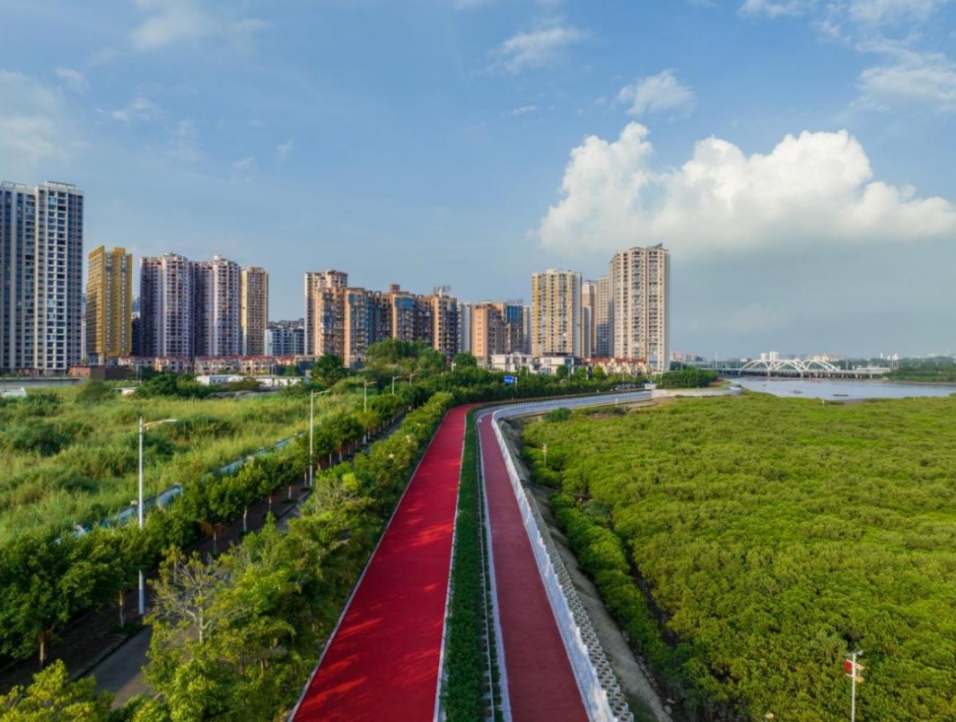 隨著西灣海岸線生態(tài)修復(fù)完成,一條長達(dá)4.2公里的綠道也隨之建成,宛如一條彩色的絲帶,沿著海岸線蜿蜒伸展,景色愈發(fā)美不勝收。漫步在綠道上,一側(cè)是波瀾壯闊的大海,碧海藍(lán)天與遠(yuǎn)處的紅樹林相映成趣;另一側(cè)則是現(xiàn)代化的城市景觀,鱗次櫛比的高樓大廈與造型獨特的橋梁交相輝映。
